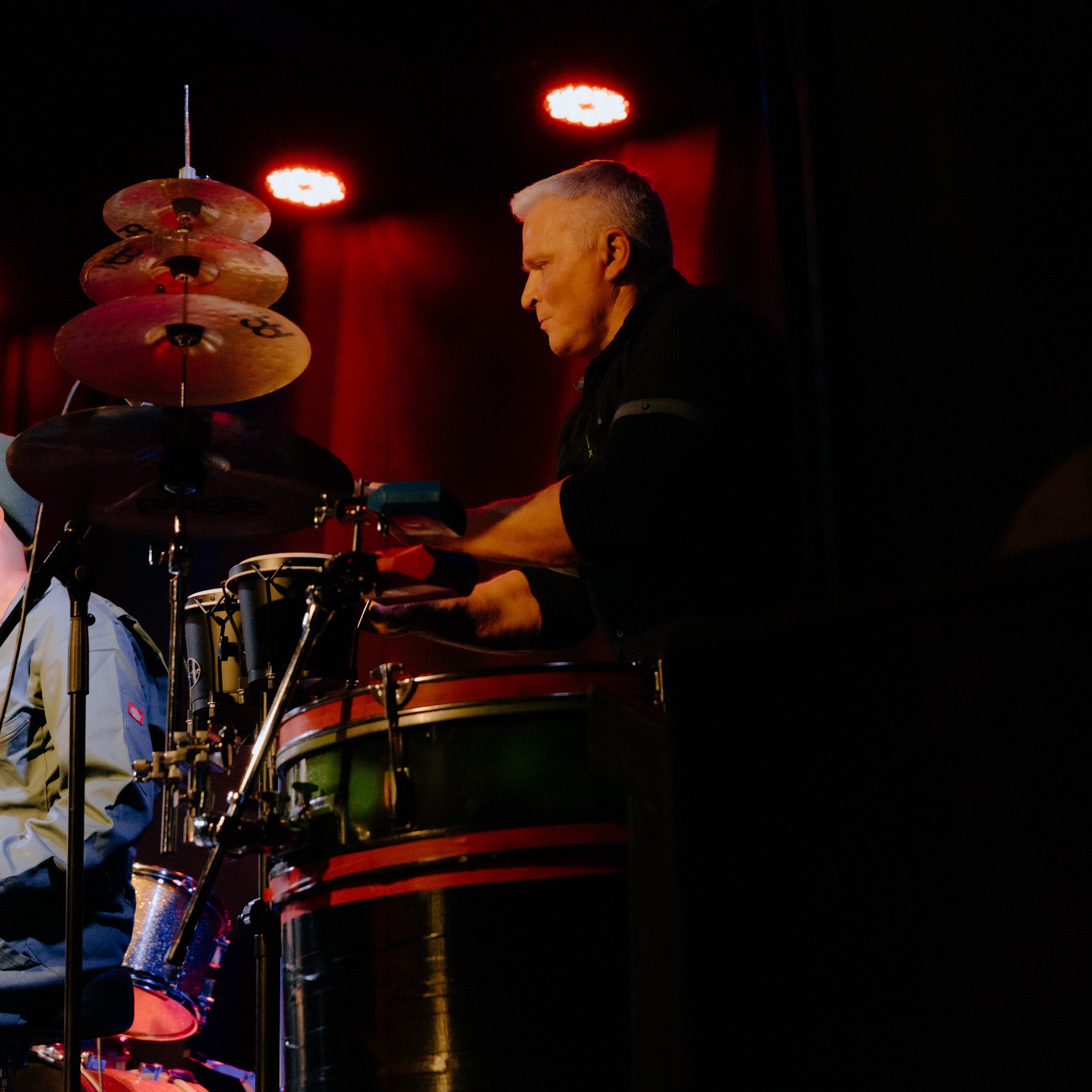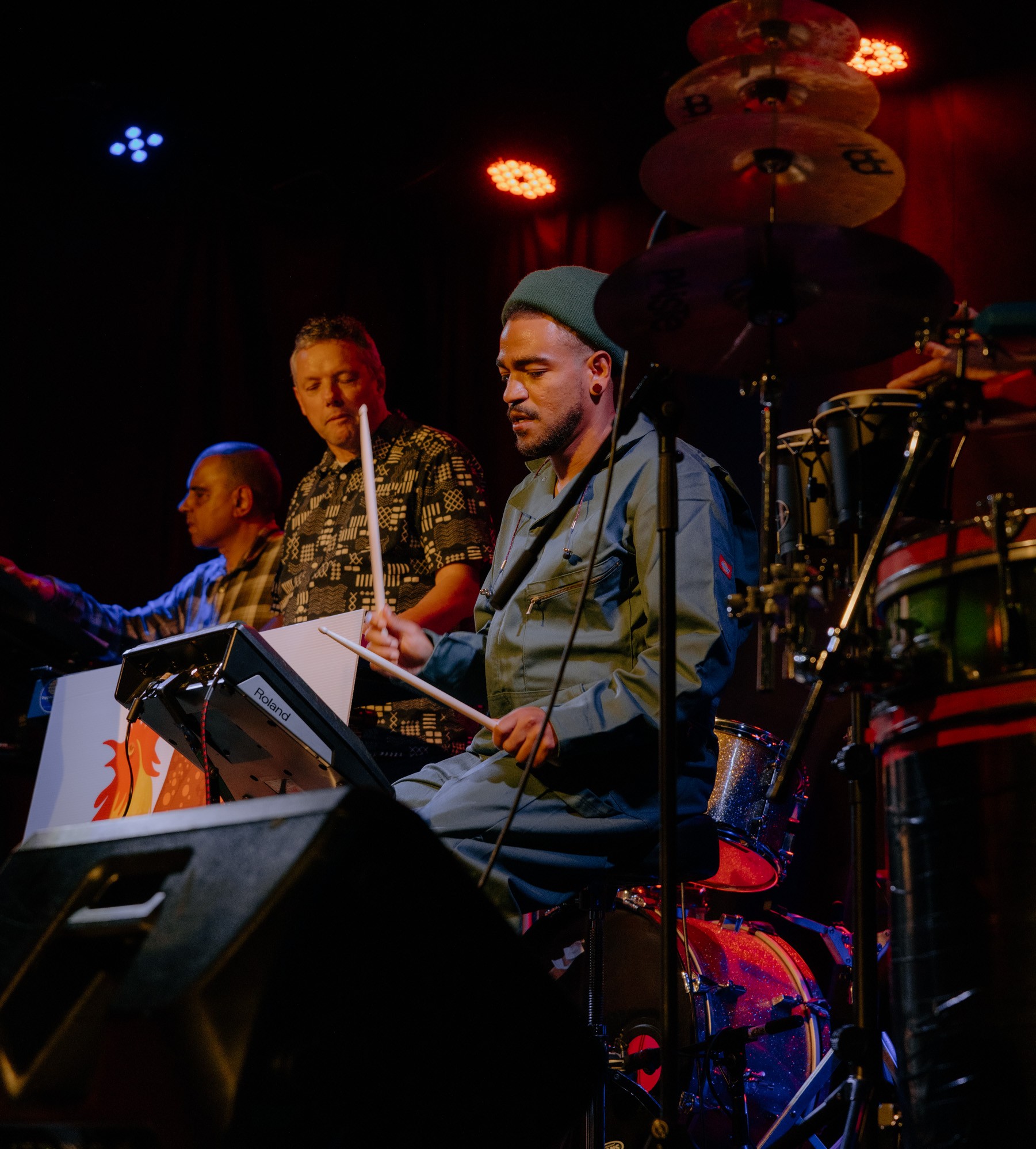 Providing the rhythm to the electronic melodies played on synthesisers by Alex and Darren were percussion maestros Henrique Franco and Slawomir Cichy. On bass guitar Jan Uhrin.