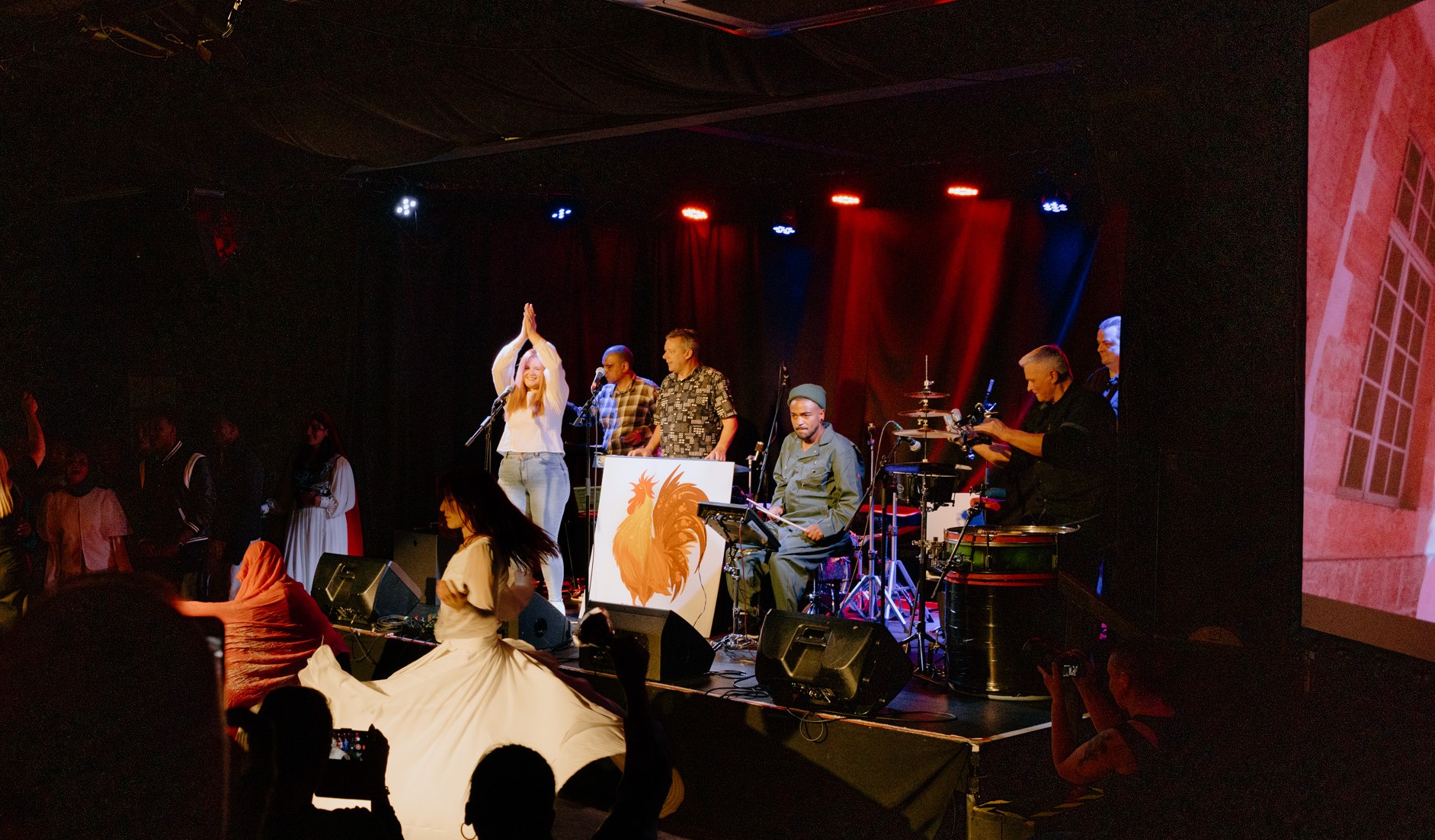 Joining virtually on a video screen broadcasting from France, Fahima Mirzaei. Fahima was the only female whirling dancer in Afghanistan and was due to kick off her biggest tour around the country in 2021. Then the Taliban took over. And she had to escape. BBC Documentary The video of Fahima whirling was filmed by Romu Docrus at Musée Saint-Remi. The video with a version of AHEGPBTRFTCOTU music composed by Alex Thompson was also released.