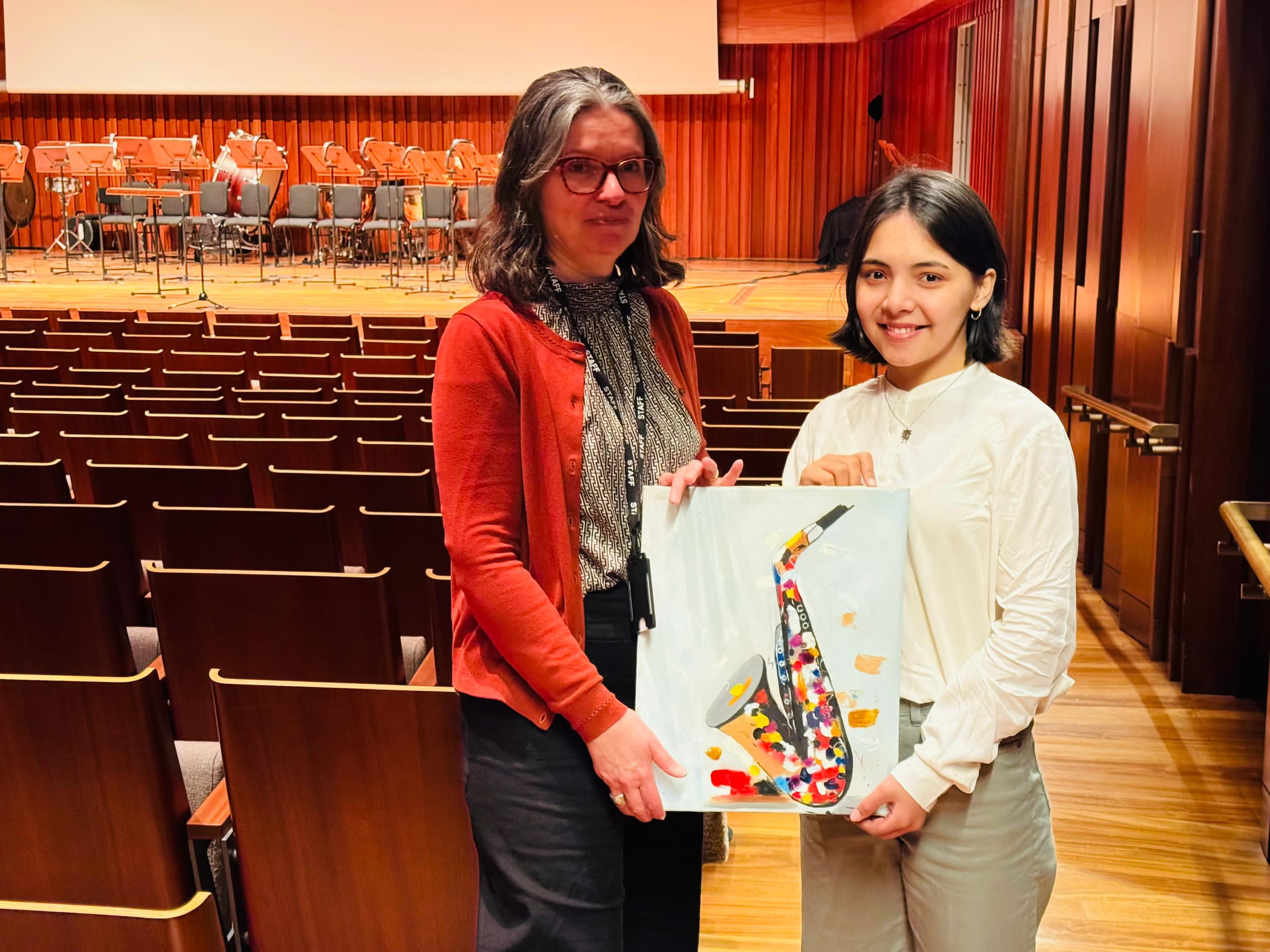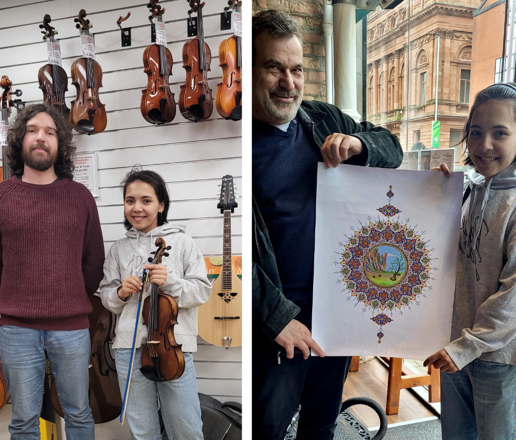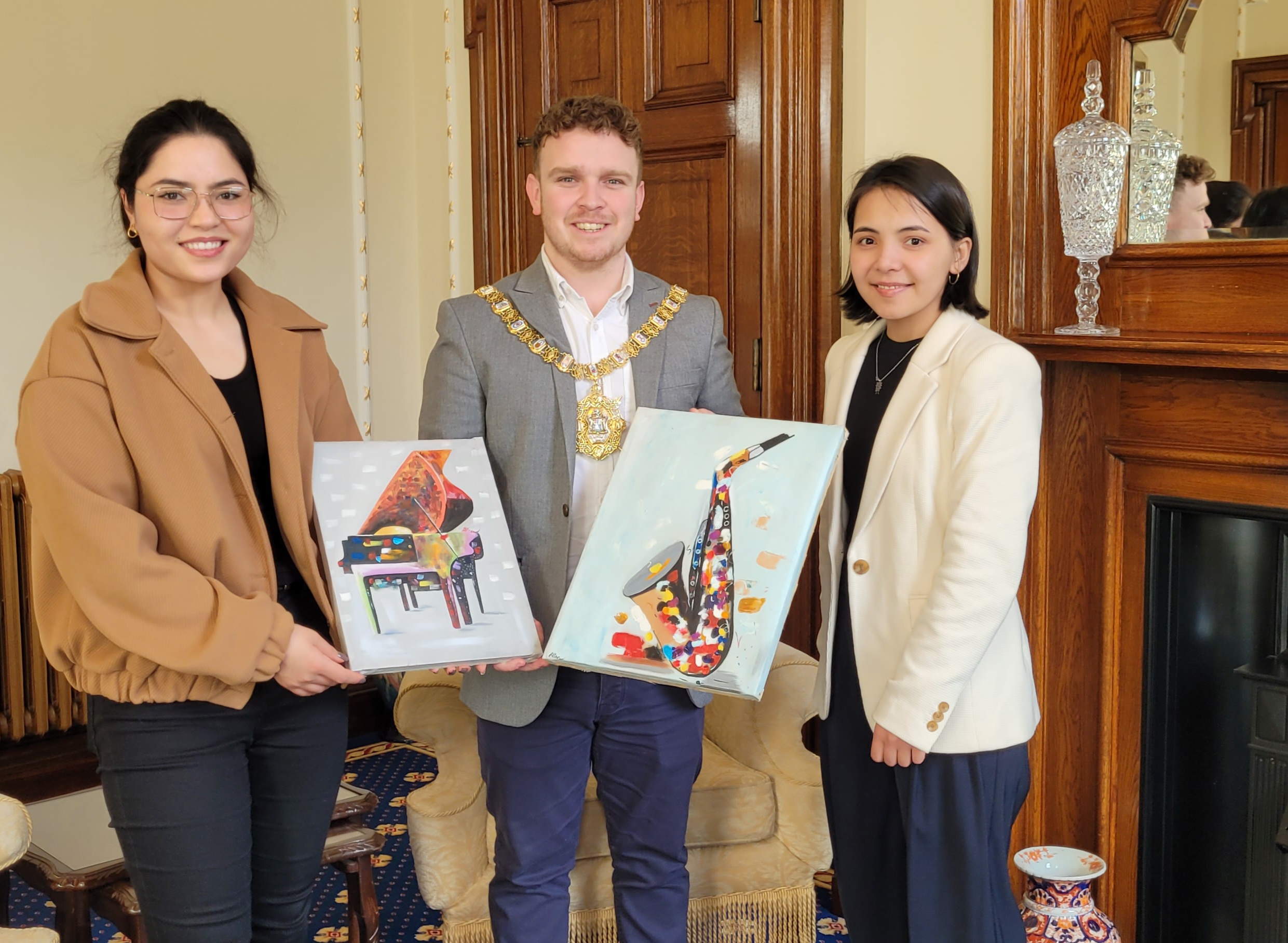 The Lord Mayor was very kind, talked very fast, who was seeming patient to be with people as a friend not a politician. He made me feel so special and it was an honour to meet him and show him my paintings of music instruments. This would never happen in Afghanistan and never did I imagine I could meet a Politician VIP who would encourage me as a woman artist.