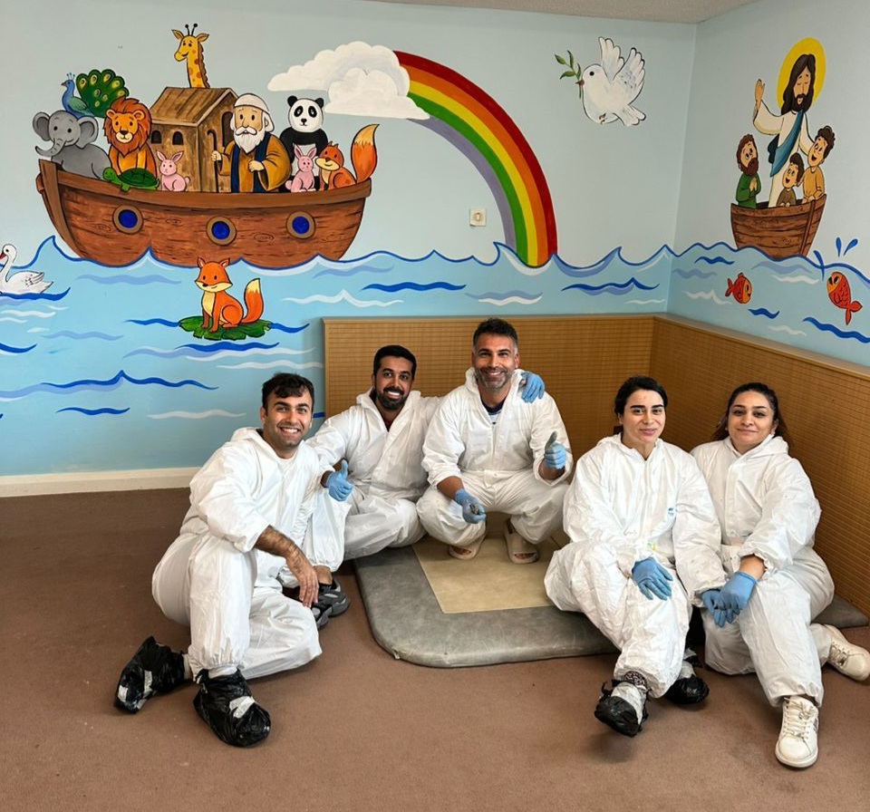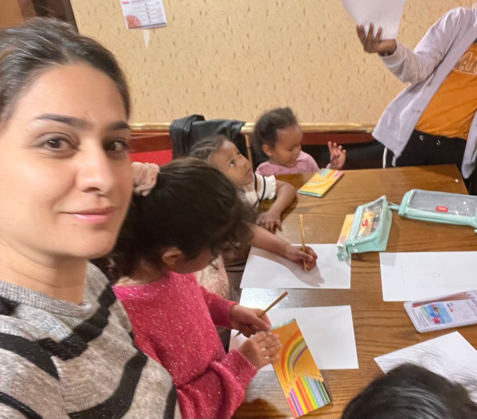 Even though dealing with all the stress around her situation, Mozhgan has been using her skills to help others. Teaching children art and painting rooms for children's activities.