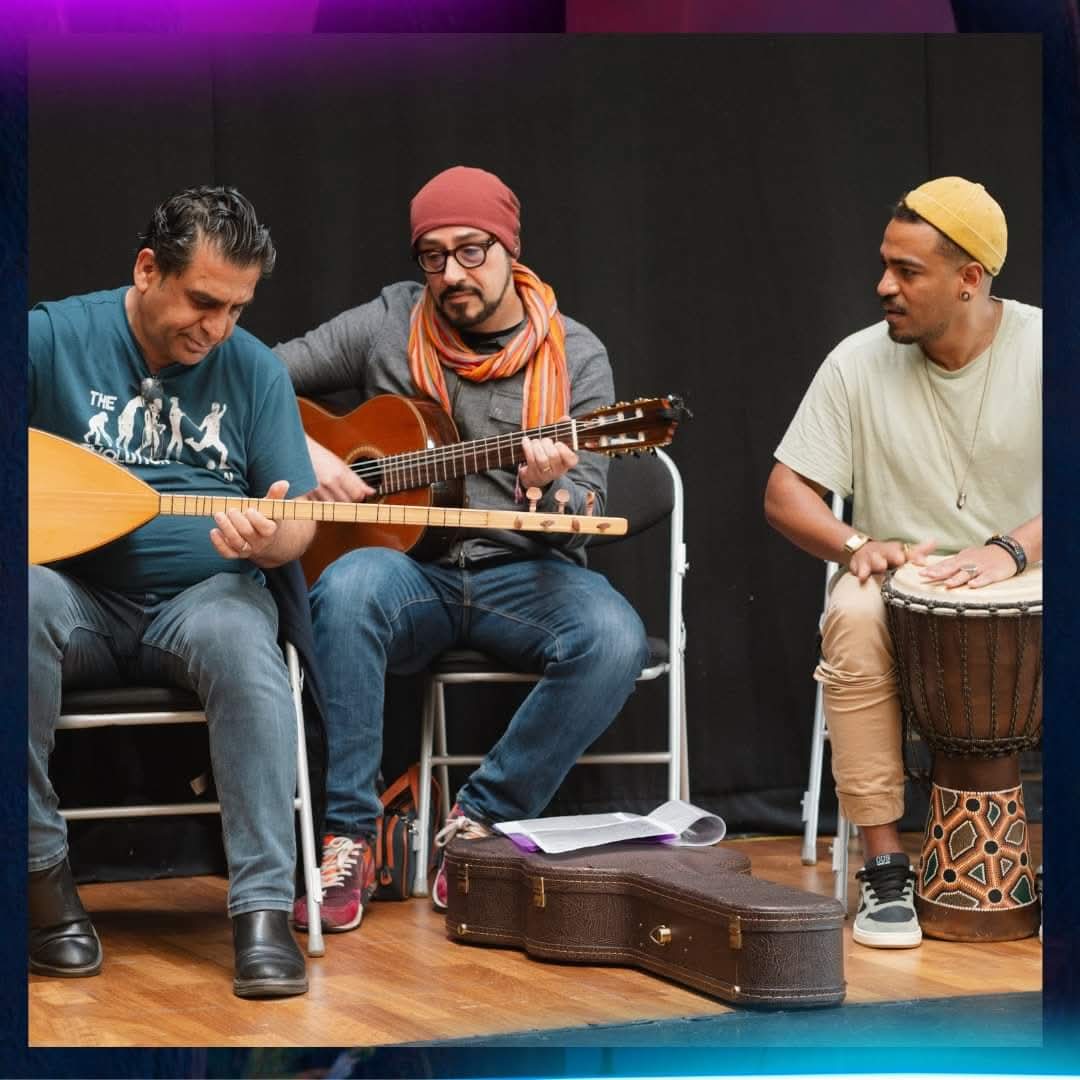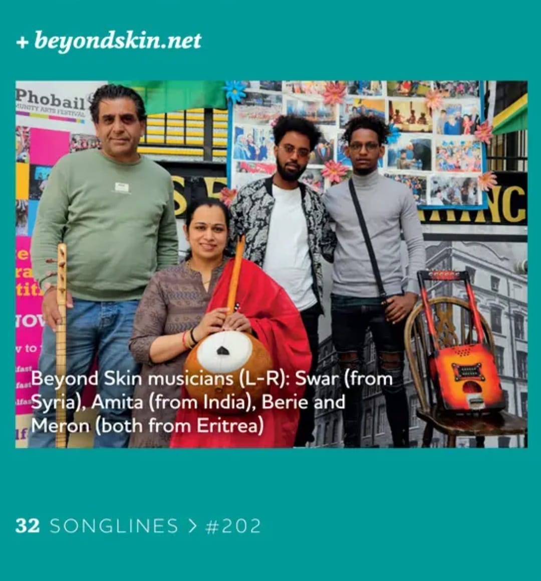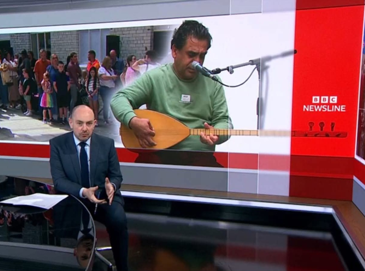 Swar Ahmed with his wife and two children arrived in Northern Ireland 2024 having left Syria due to the war. Although Swar had established a professional music career as a singer, oud and saz player, he had to begin again in a new environment whilst he and his family were coming to terms having to leave their life in Syria. Swar had little English but music was his language, and he just needed to find a music family in Northern Ireland. Members of Ballywillian Church, close to were Swar and family were staying, signposted him to Darren at Beyond Skin. Swar was able to get immediate support through a Beyond Skin programme funded by Arts Council of Northern Ireland Lottery Programme. Friends at the Northern Trust and Causeway Coast and Glens Borough Council Good Relations also helped with support.