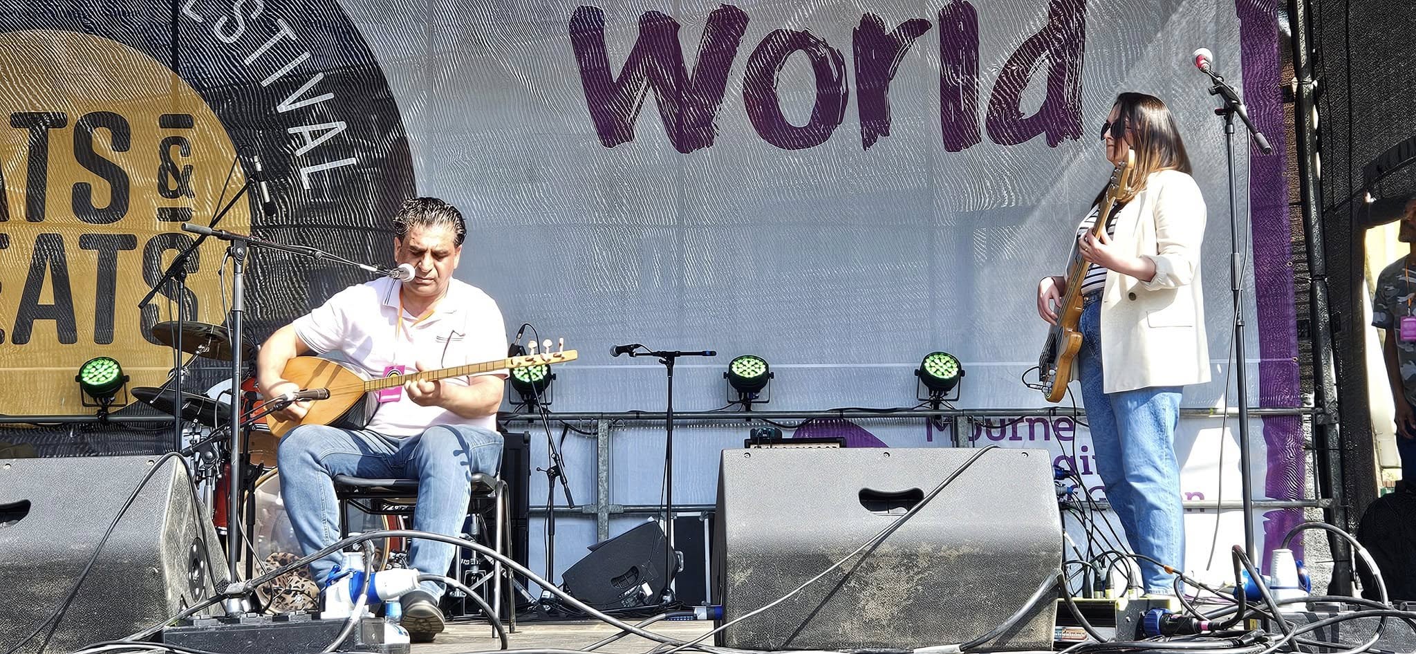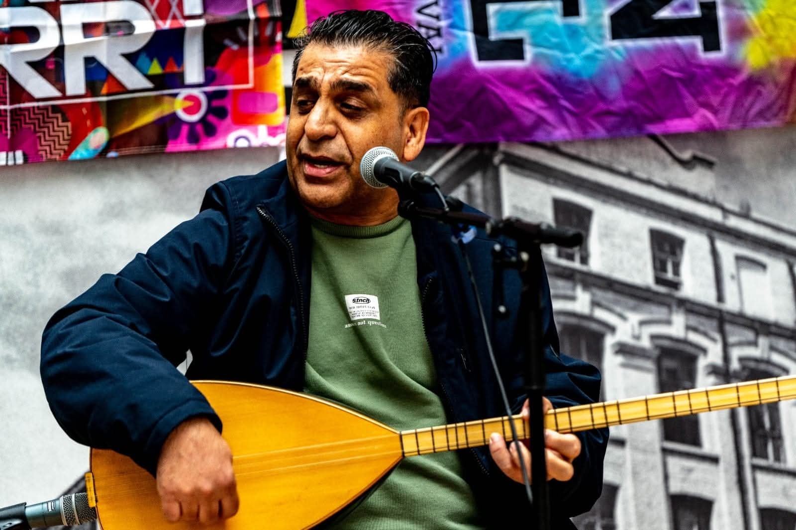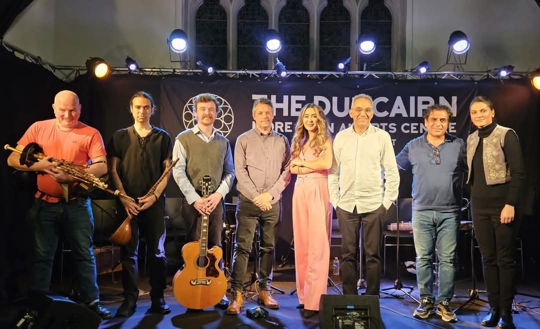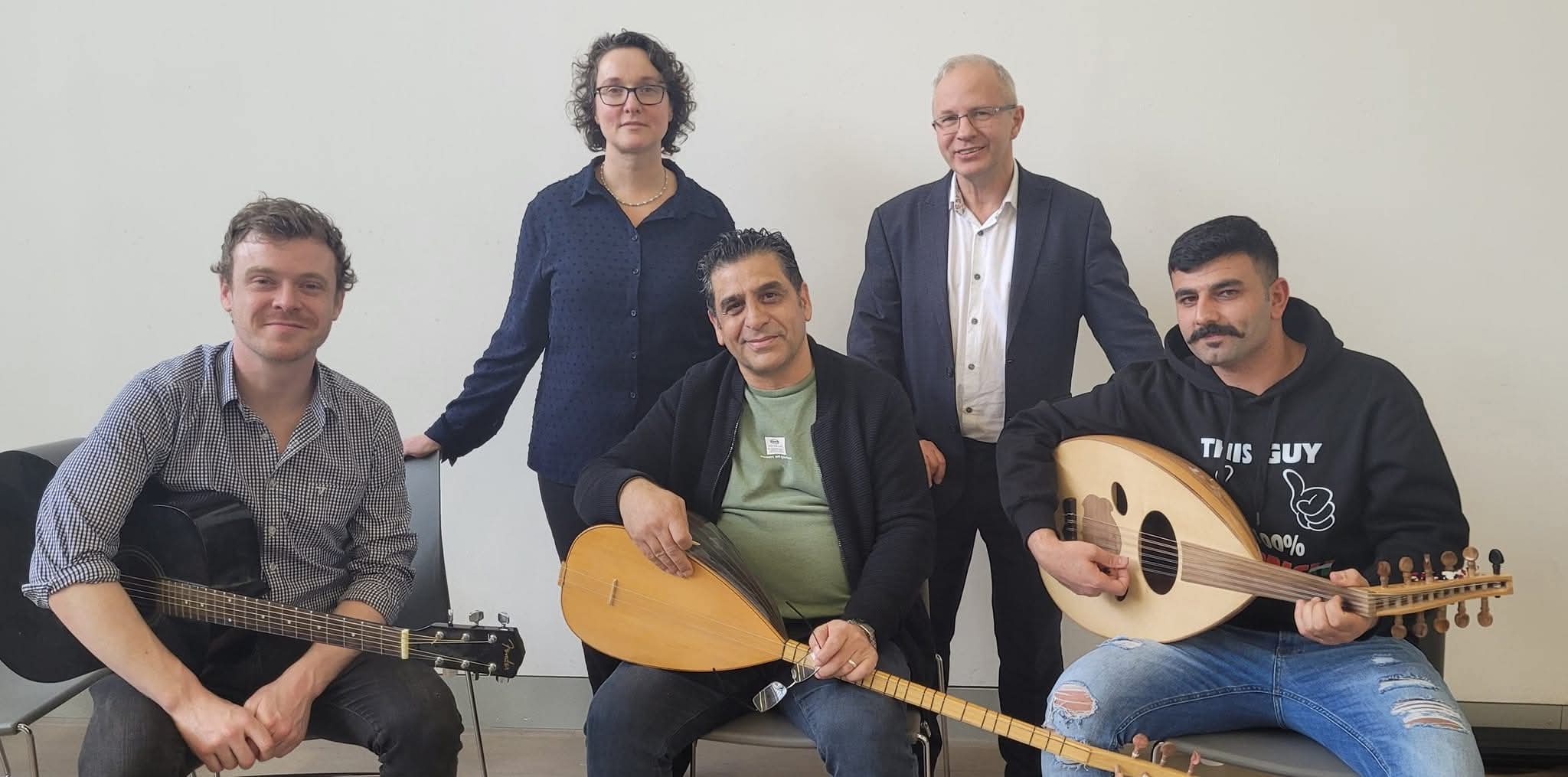 Swar Ahmed with his wife and two children arrived in Northern Ireland 2024 having left Syria due to the war. Although Swar had established a professional music career as a singer, oud and saz player, he had to begin again in a new environment whilst he and his family were coming to terms having to leave their life in Syria. Swar had little English but music was his language, and he just needed to find a music family in Northern Ireland. Members of Ballywillian Church, close to were Swar and family were staying, signposted him to Darren at Beyond Skin. Swar was able to get immediate support through a Beyond Skin programme funded by Arts Council of Northern Ireland Lottery Programme. Friends at the Northern Trust and Causeway Coast and Glens Borough Council Good Relations also helped with support.