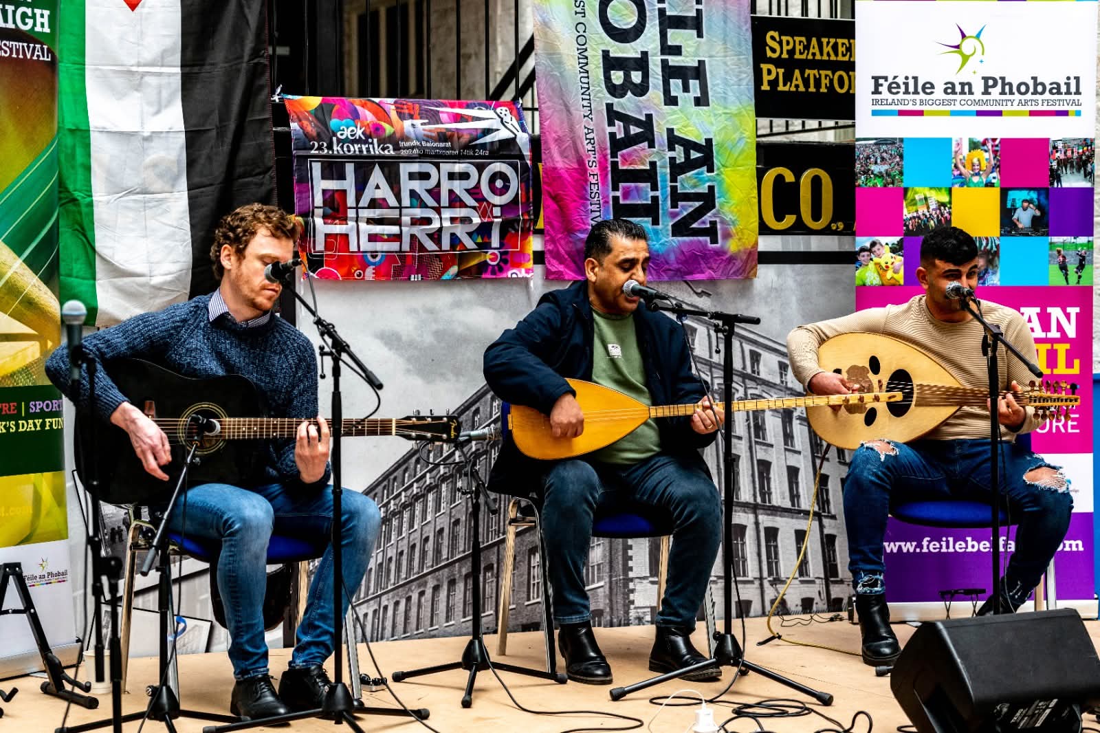 Swar was first introduced to Irish musician Conor Pelan and Syrian musician Haroon Sofi . As a trio they performed at various events including Feile Festival, Holywood Creative Festival and at the Mac Theatre as part of the Scholars at Risk conference hosted by Queens University Belfast and University of Ulster. (Video). Swar also performed as a duo with Conor and Italian musician Luigi Cirrilo and solo at some events including at the Soma Festival.