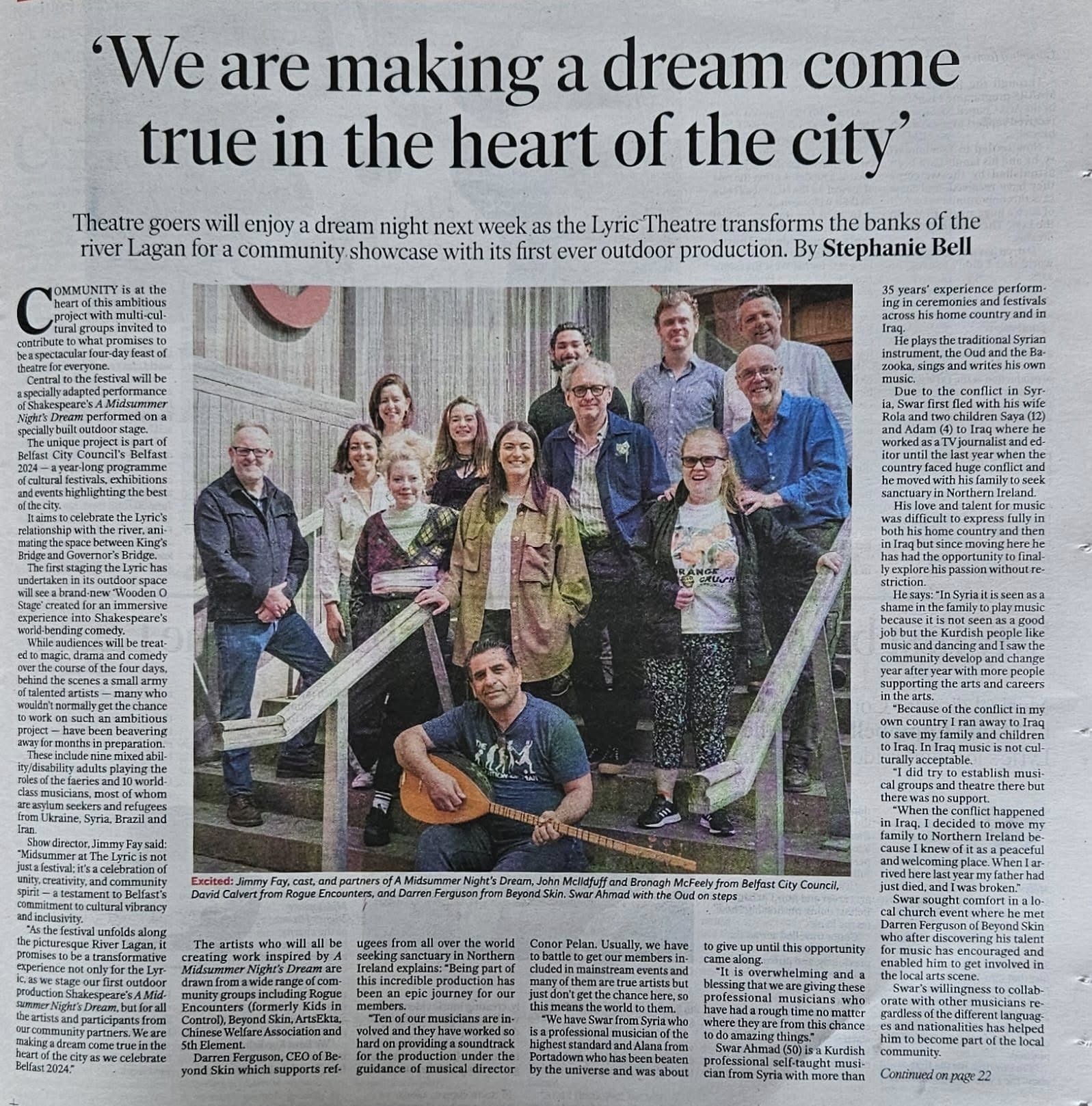 In the summer of 2024, the unimaginable happened. Swar was invited into the world of William Shakespeare to be part of a music collective performing a new soundtrack to Mid Summers Night Dream, a Lyric Theatre, Rogue Encounters and Beyond Skin collaboration theatre production for Belfast 2024. Learning English is one thing, understanding Shakespeare is another, but Swar was in the caring hands of a growing creative family he had wished for.