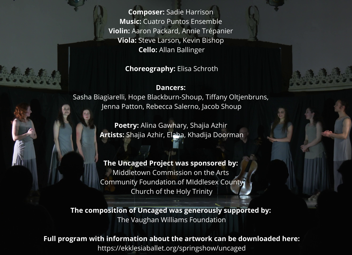 This project features a premiere ballet by composer Sadie Harrison and choreographer Elisa Scroth, performed by Ekklesia Contemporary Ballet