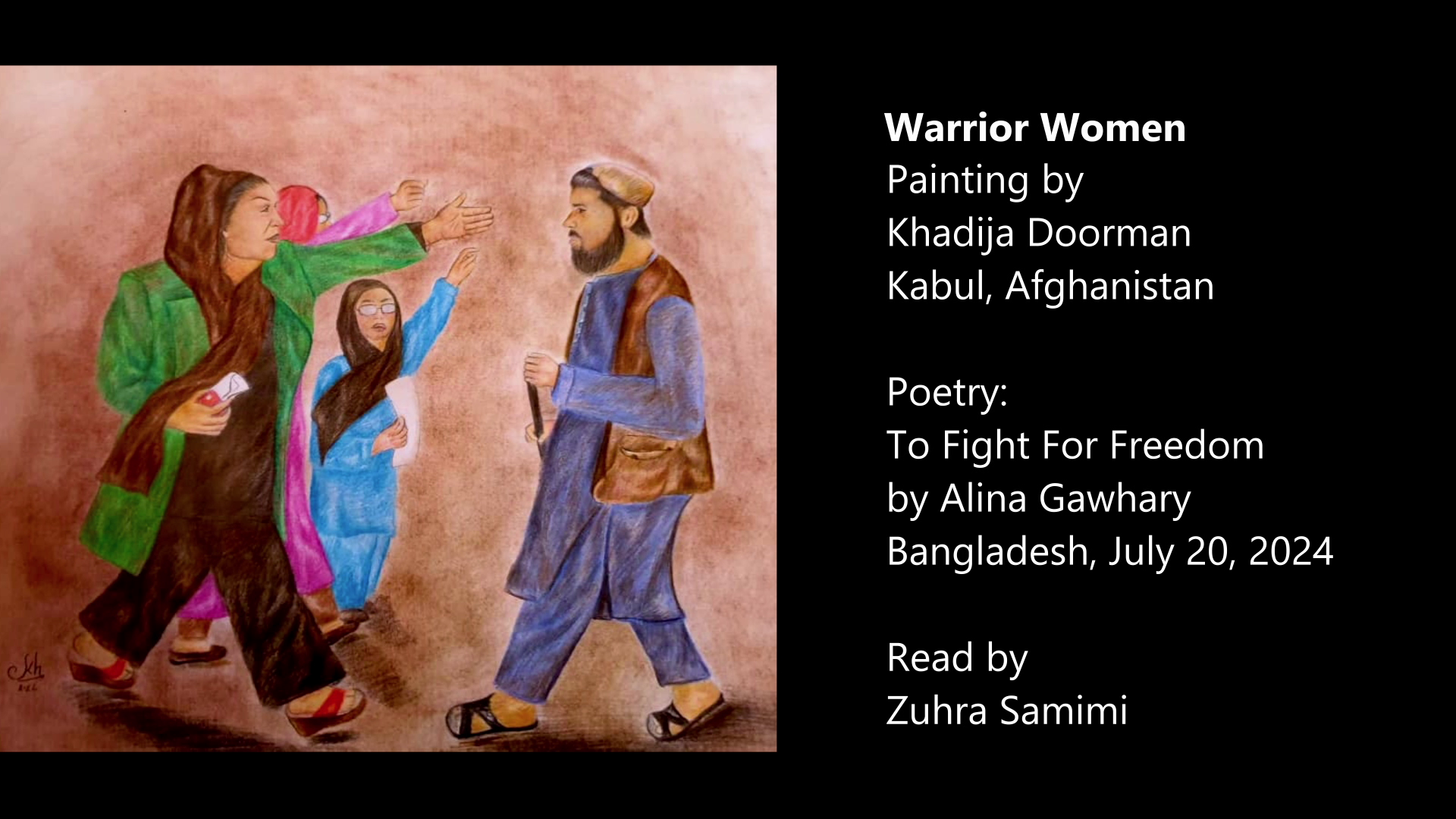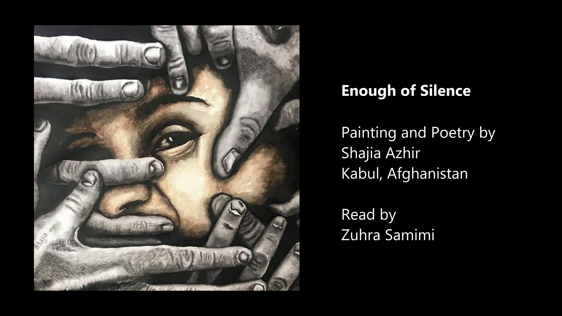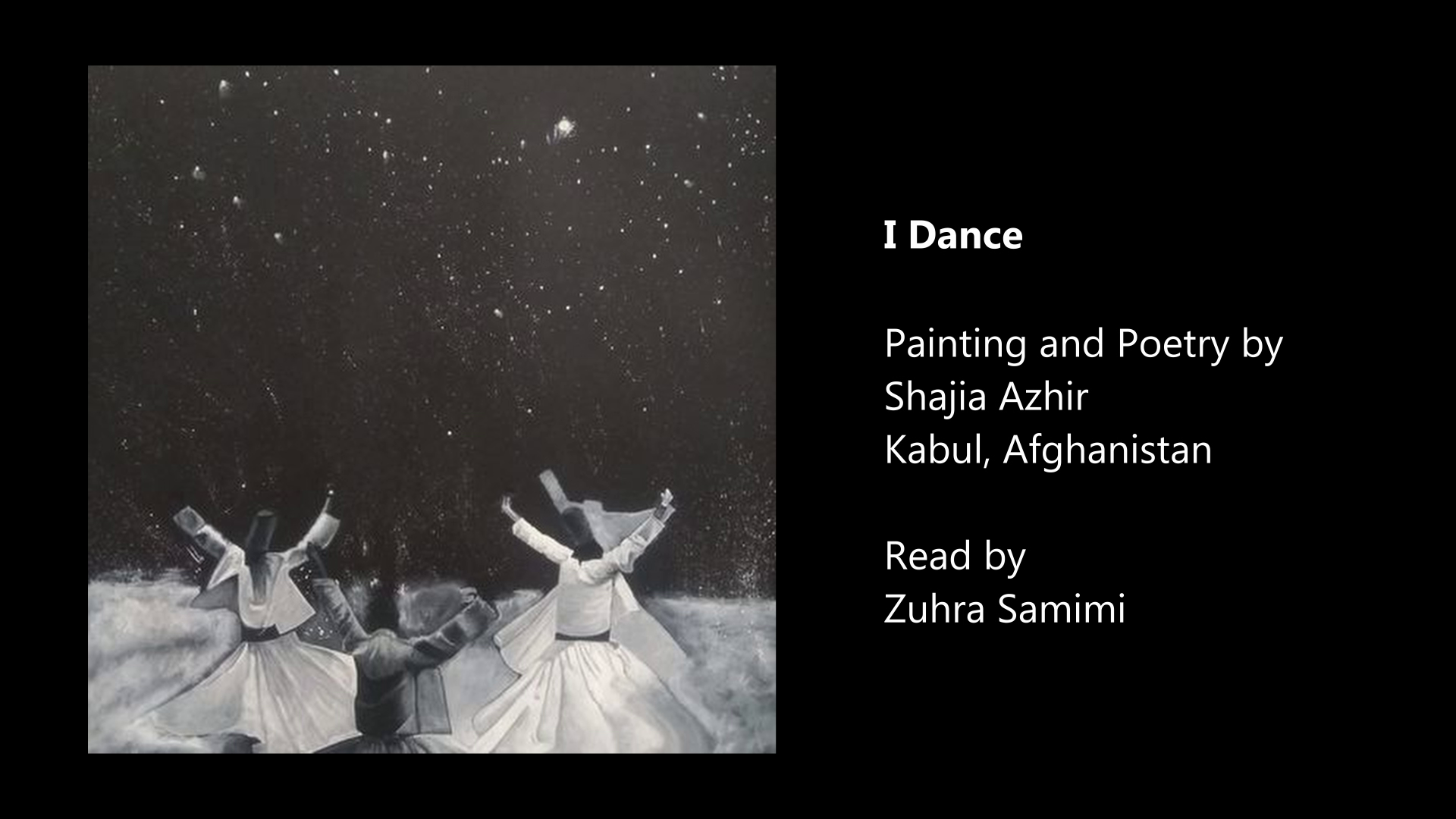 Inspired by poems and paintings by Afghan women that were procured from within Afghanistan with the help of Beyond Skin. 100% of the money from paintings purchased for the project was given to the artists.
