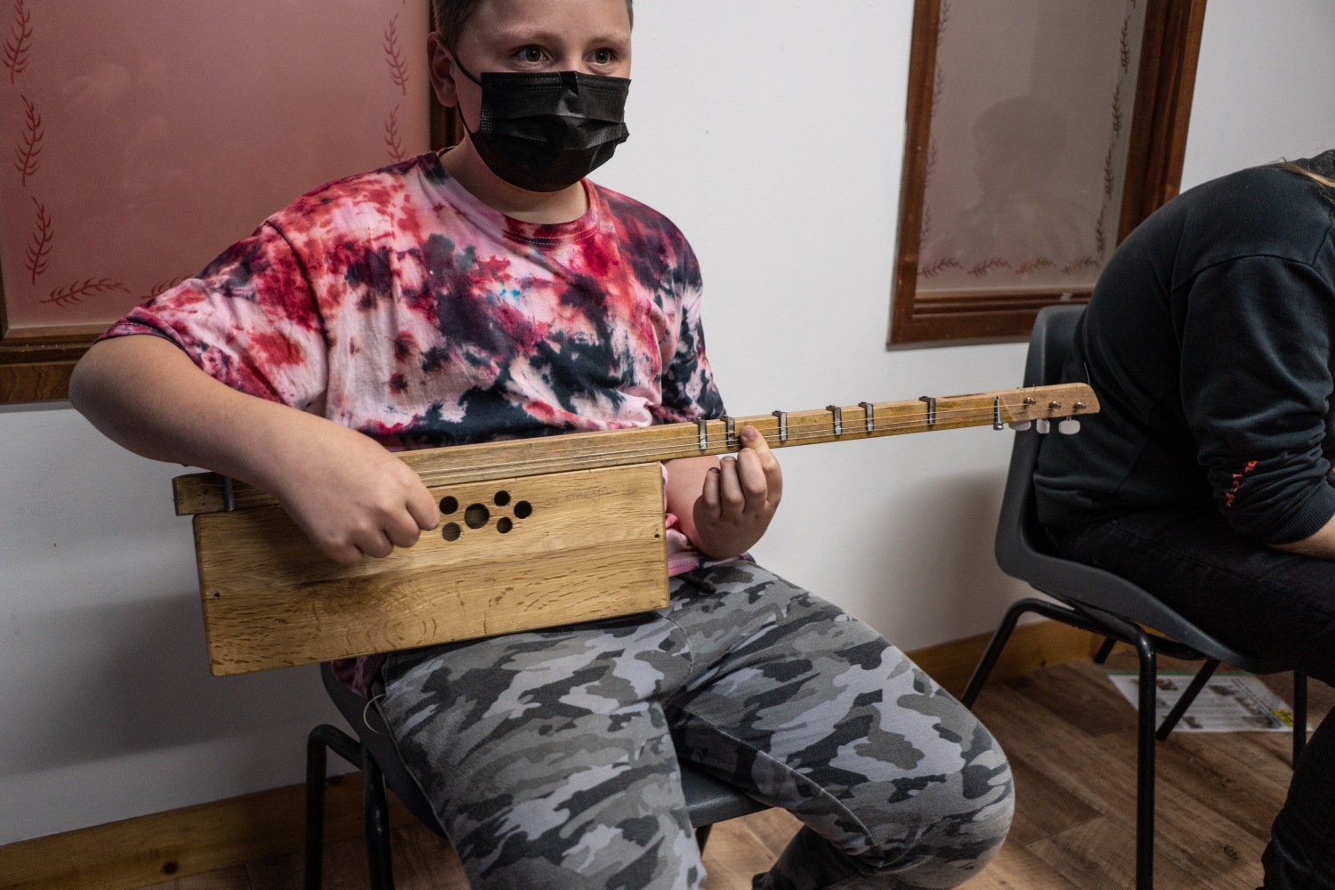 We sent a carpenter called Patrick around the Protestant bonfires being built for the eleventh night, to gather good wood to make with young people in areas of social need stringed instruments, we called Bon Guitars.